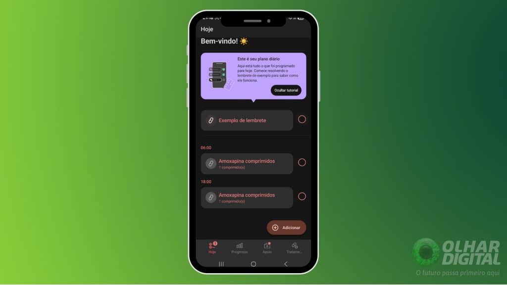 Print da tela do app Lembrete de Medicamentos (reprodução)