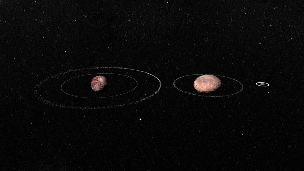Da esquerda para a direita, Quaoar, Haumea e Chariklo, três corpos menores com anéis conhecidos até então. Crédito: A. Crispim / UTFPR