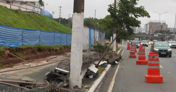 As chuvas fortes que atingiram a capital paulista neste domingo (8) causaram a queda do muro que cerca o Aeroporto de Congonhas, localizado na Zona Sul, em dois trechos: na saída da Avenida Washington Luiz para a Avenida Bandeirantes, que está interditada na manhã desta segunda (9) para os reparos, e na Avenida Jurandir.