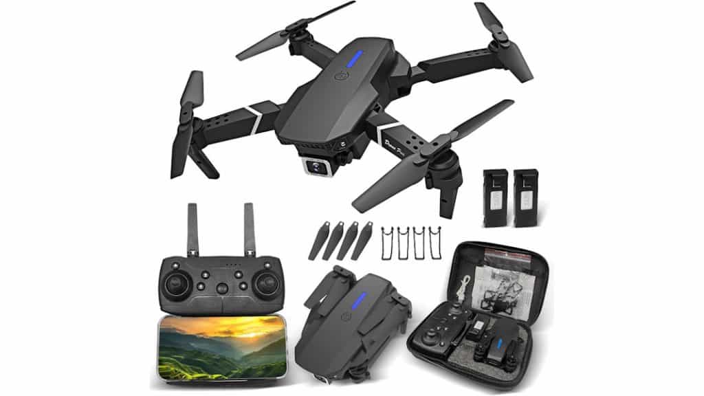 Indicado para iniciantes, o E88 é leve, dobrável e conta com câmera 4K básica (interpolada). Possui duas baterias com autonomia média de 10 a 12 minutos cada.