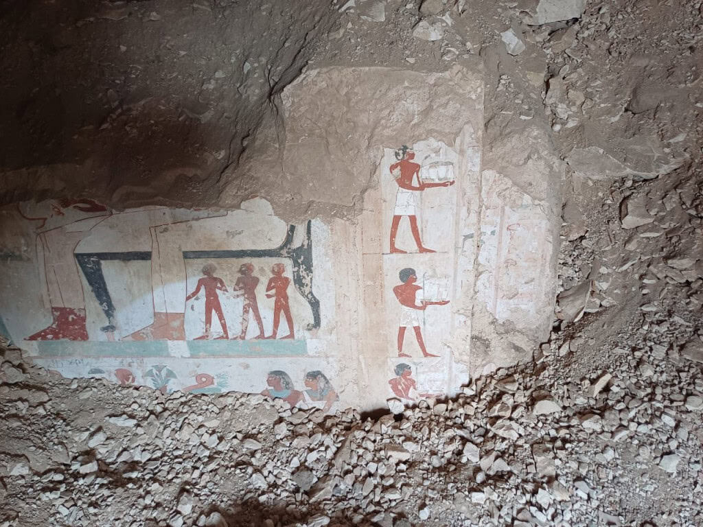 Pinturas encontradas em uma das tumbas (Imagem: Ministério do Turismo e Antiguidades do Egito)