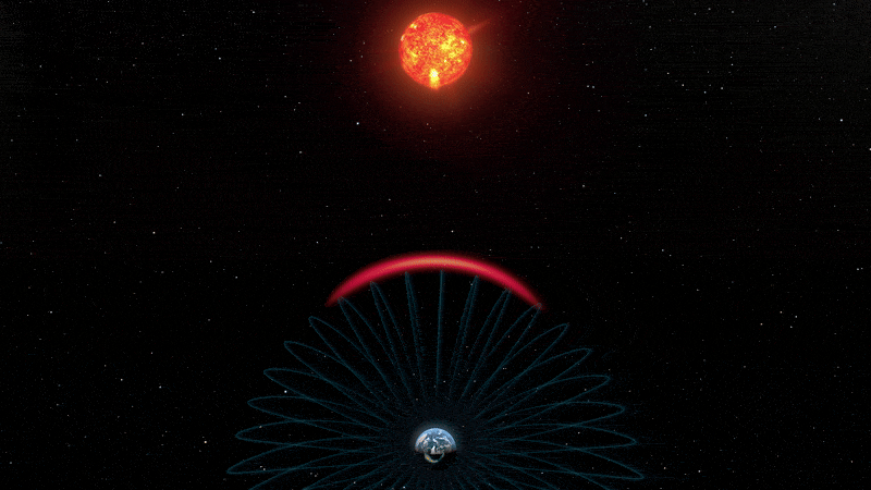 Escudo magnético da Terra no caso de uma tempestade solar