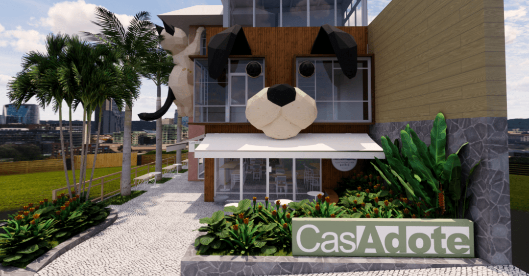 Além dos andares de adoção, a CasAdote terá uma área de convivência pet friendly no subsolo, destinada a visitantes e tutores que desejem utilizar o local para encontros e pequenos eventos.