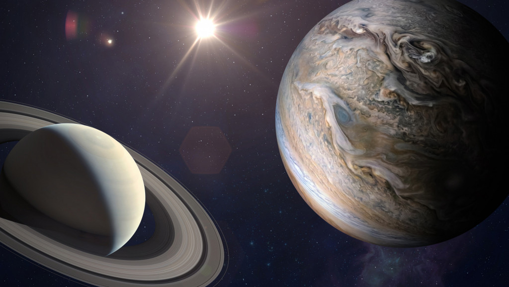 Saturno e Júpiter são os gigantes gasosos do Sistema Solar (Imagem: Buradaki/Shutterstock)