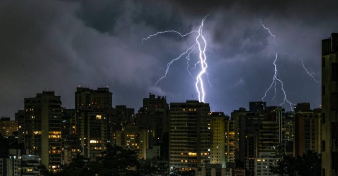 No final da tarde, há condições para chuvas com intensidade de moderada a forte acompanhadas de rajadas de vento e queda de raios.